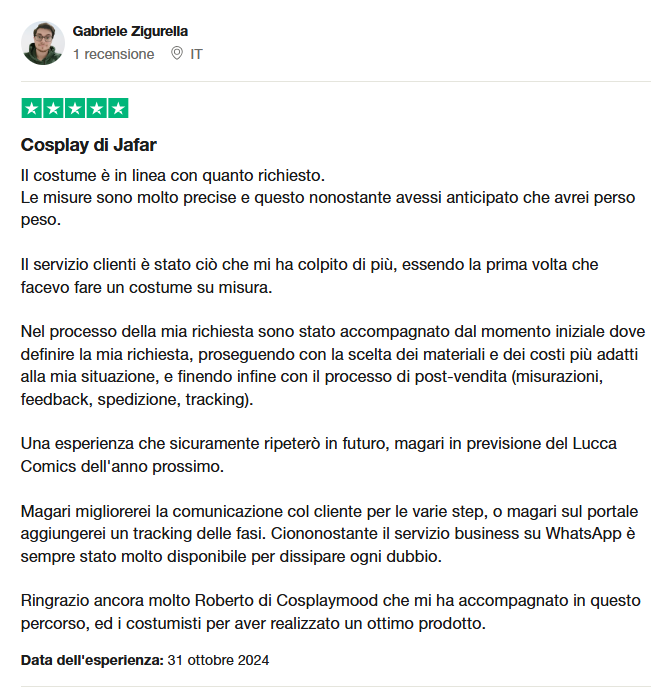 Re: Come ottenere il cosplay su misura che desideri da tanto tempo e provare sulla tua pelle la sensazione di sentirti proprio come l'eroe che ammiri così tanto.